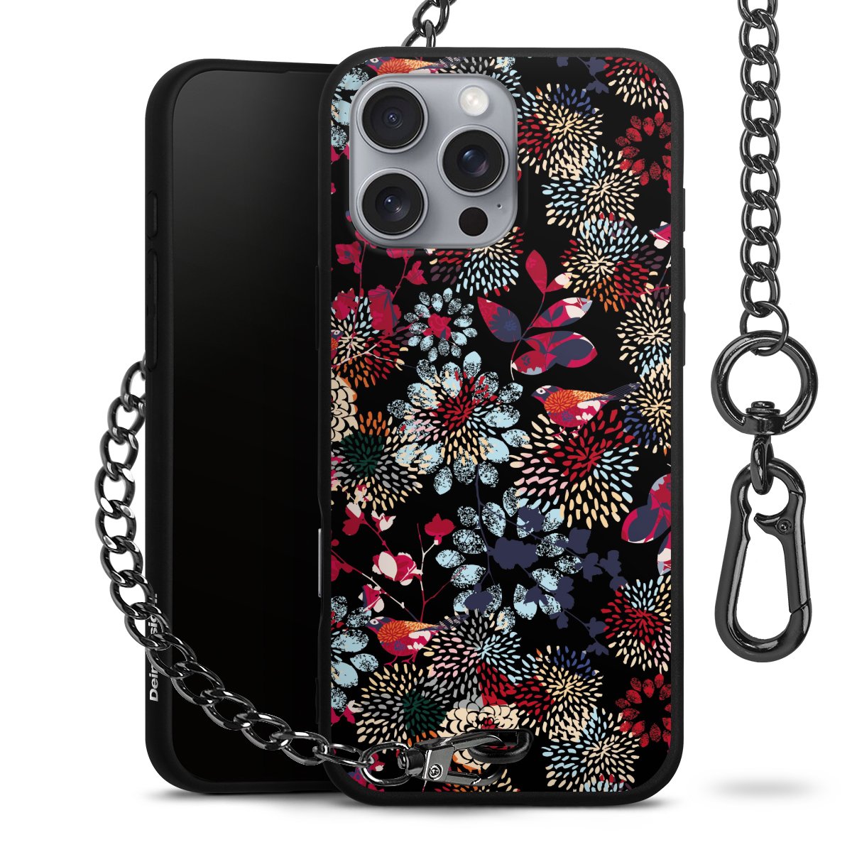 - Mattschwarze Handyhülle mit Metallkette