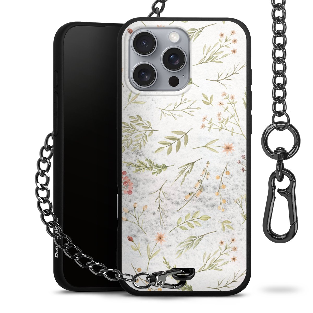 • Mattschwarze Handyhülle mit Metallkette