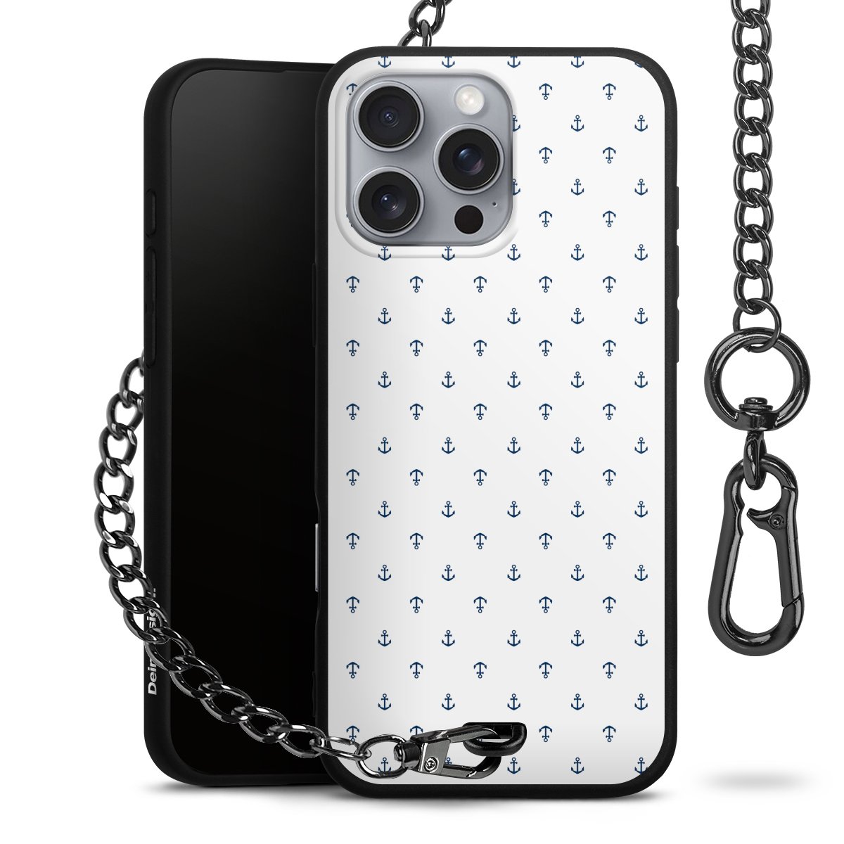 - Mattschwarze Handyhülle mit Metallkette