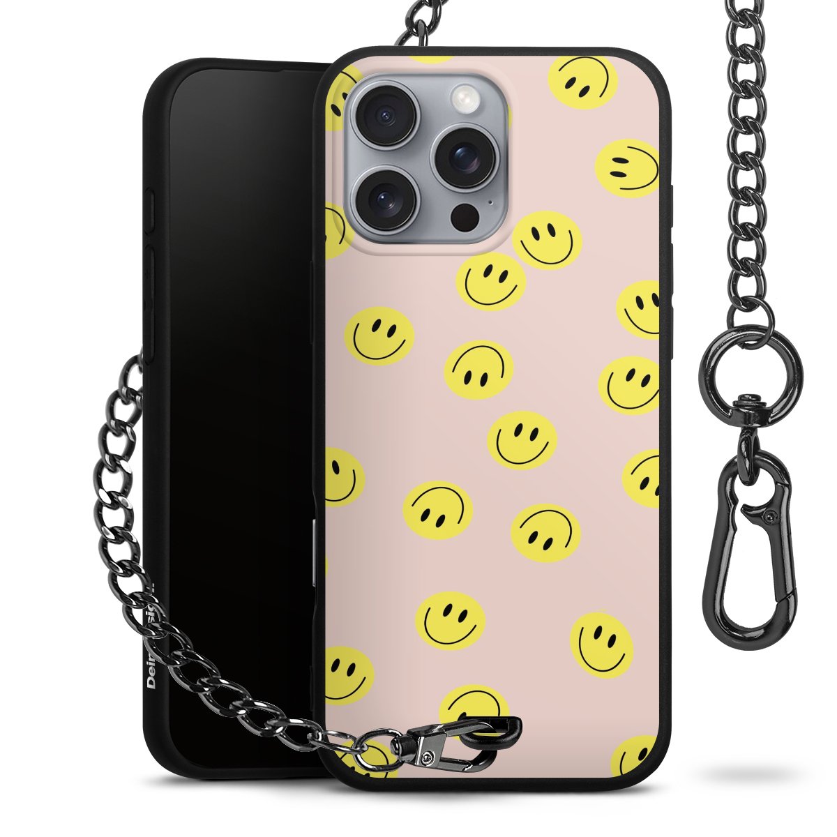 Die mattschwarze Silikon-Handyhülle besteht aus robustem TPU (thermoplastisches Polyurethan). Sie ist flexibel und schützt Dein Smartphone vor Stößen und Kratzern. Die Kette sowie der Karabinerhaken sind aus Metall in Gunmetal-Optik gefertigt. Für dieses Produkt kommen ausschließlich TÜV-geprüfte Materialien zum Einsatz.