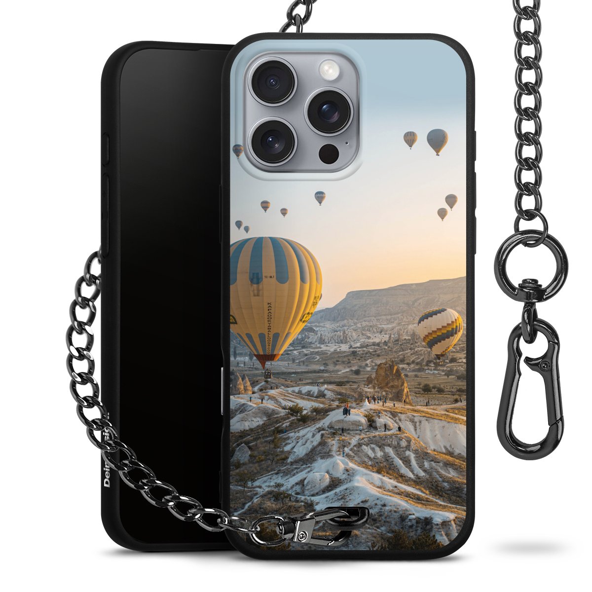 Die mattschwarze Silikon-Handyhülle besteht aus robustem TPU (thermoplastisches Polyurethan). Sie ist flexibel und schützt Dein Smartphone vor Stößen und Kratzern. Die Kette sowie der Karabinerhaken sind aus Metall in Gunmetal-Optik gefertigt. Für dieses Produkt kommen ausschließlich TÜV-geprüfte Materialien zum Einsatz.