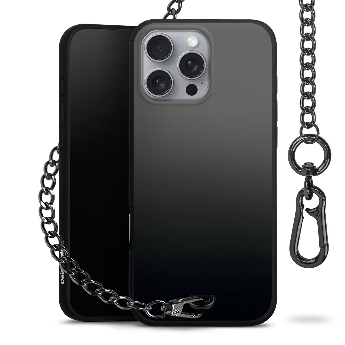 • Mattschwarze Handyhülle mit Metallkette