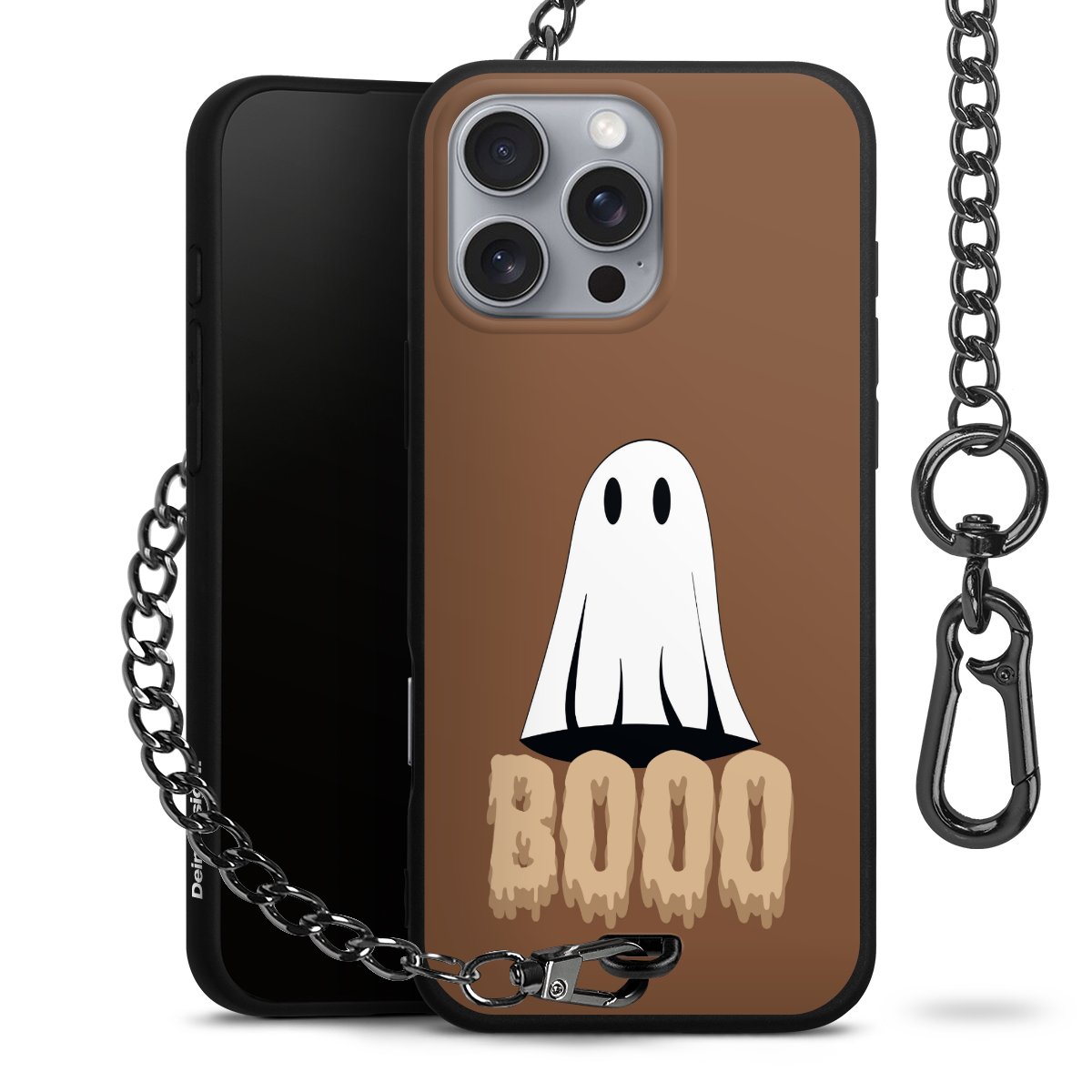 - Mattschwarze Handyhülle mit Metallkette