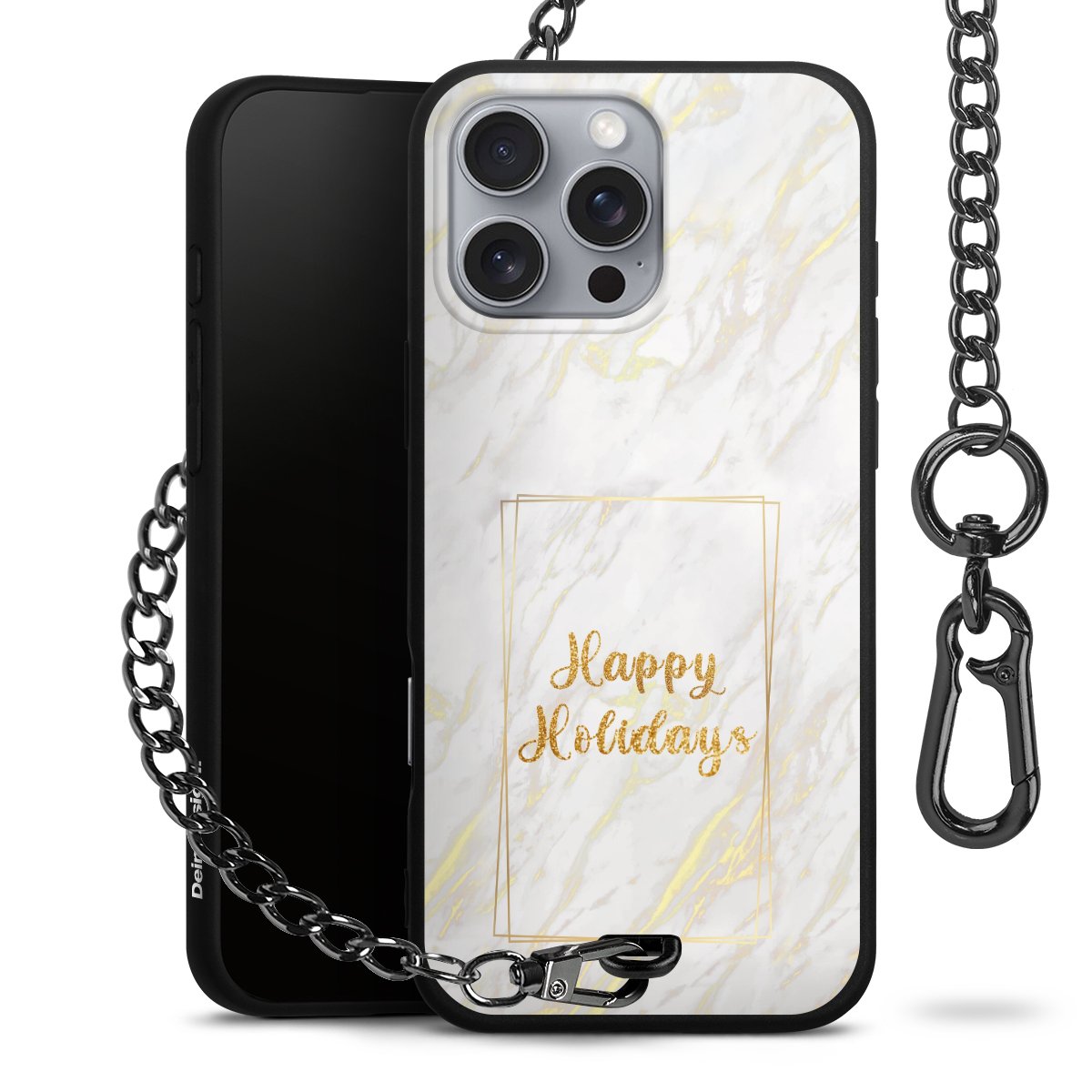 - Mattschwarze Handyhülle mit Metallkette