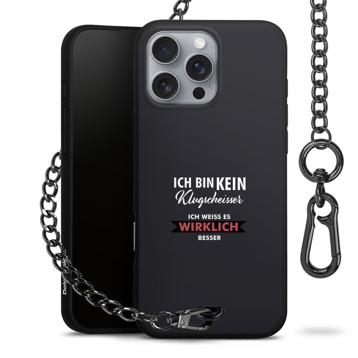 • Mattschwarze Handyhülle mit Metallkette