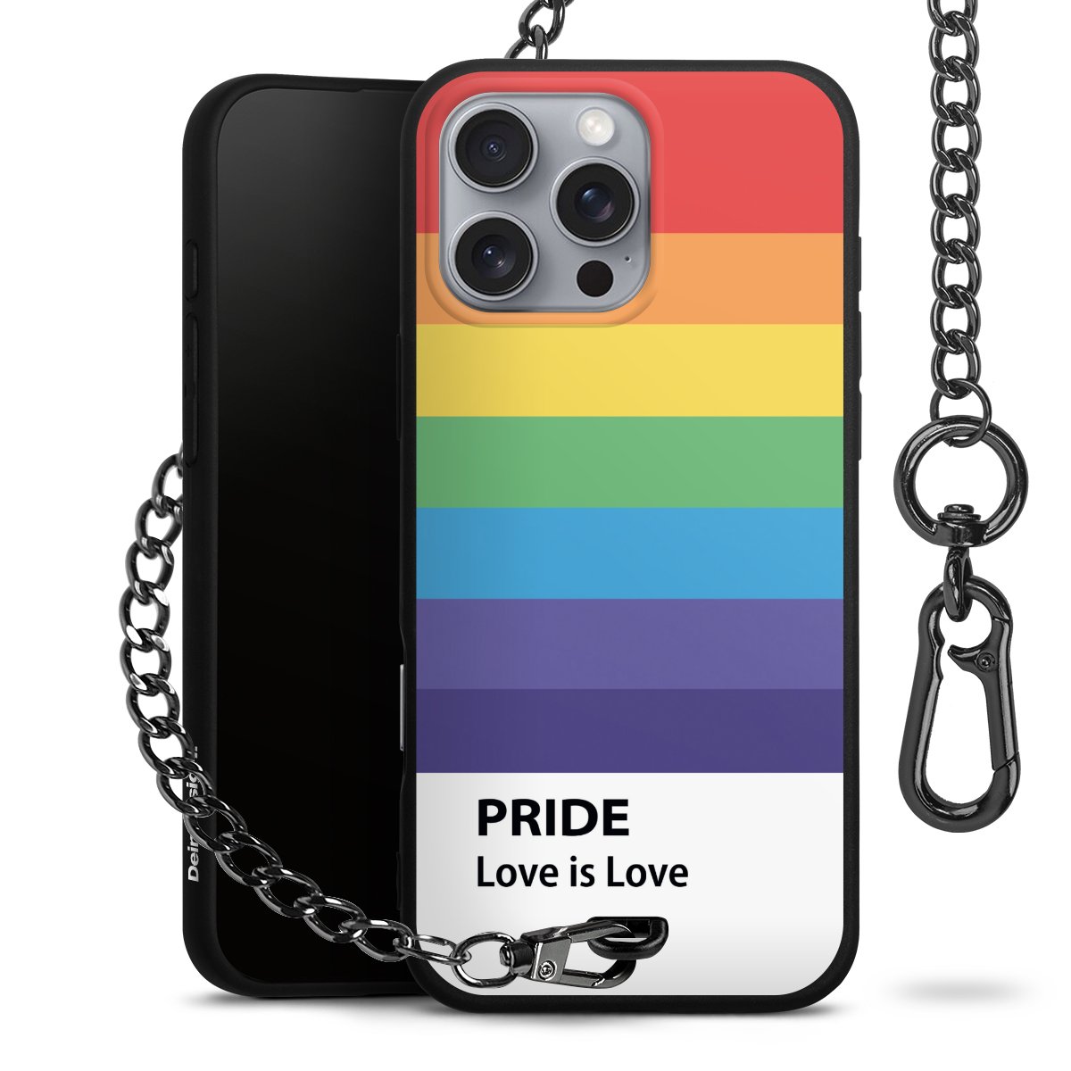 • Mattschwarze Handyhülle mit Metallkette