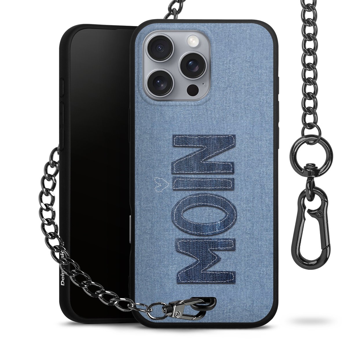 • Mattschwarze Handyhülle mit Metallkette