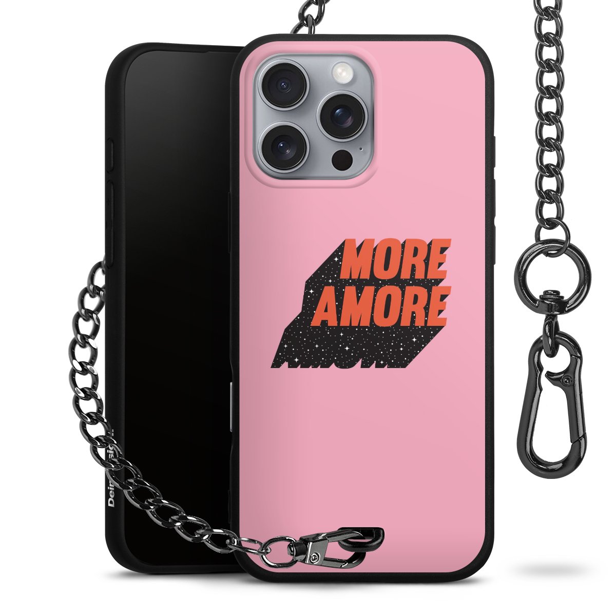 • Mattschwarze Handyhülle mit Metallkette