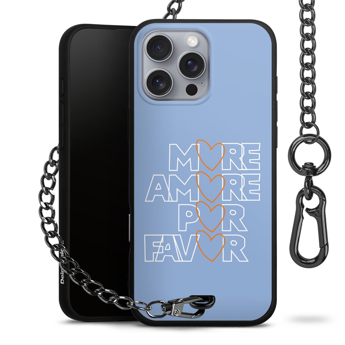 - Mattschwarze Handyhülle mit Metallkette