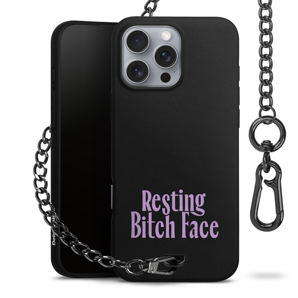 - Mattschwarze Handyhülle mit Metallkette