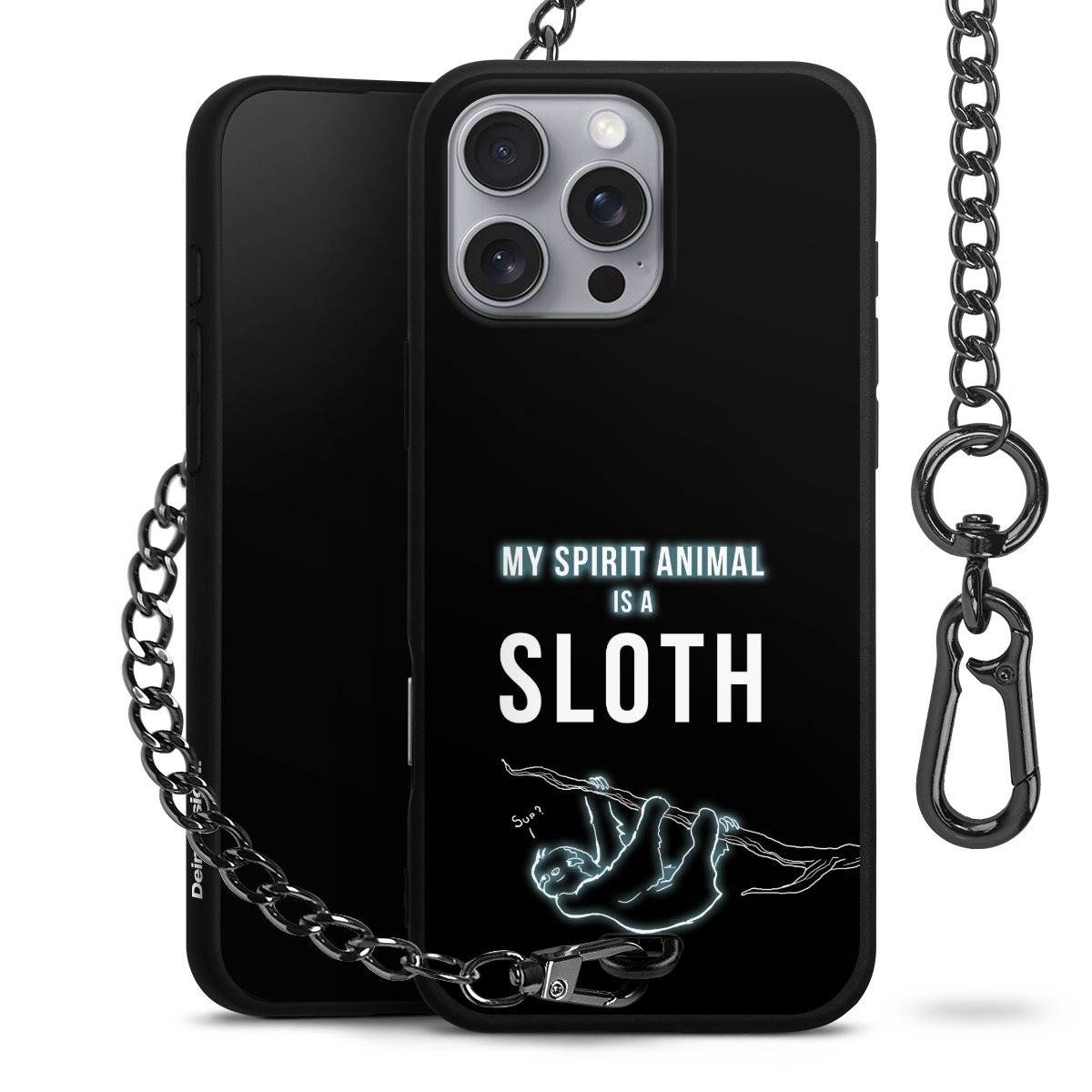 Die mattschwarze Silikon-Handyhülle besteht aus robustem TPU (thermoplastisches Polyurethan). Sie ist flexibel und schützt Dein Smartphone vor Stößen und Kratzern. Die Kette sowie der Karabinerhaken sind aus Metall in Gunmetal-Optik gefertigt. Für dieses Produkt kommen ausschließlich TÜV-geprüfte Materialien zum Einsatz.