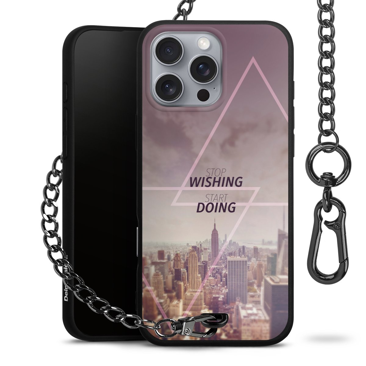 - Mattschwarze Handyhülle mit Metallkette