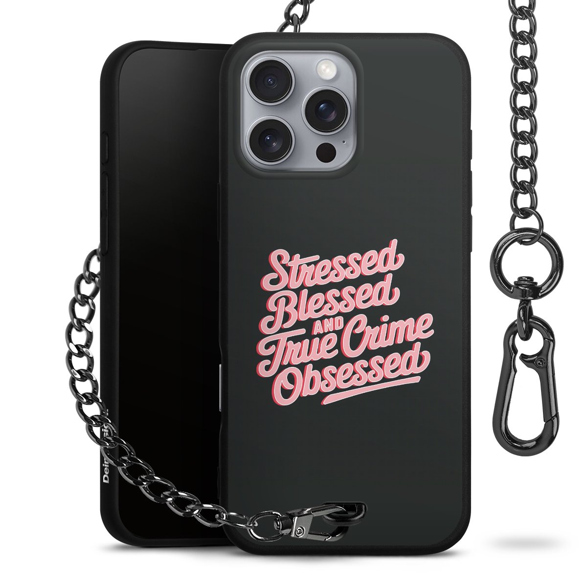 • Mattschwarze Handyhülle mit Metallkette