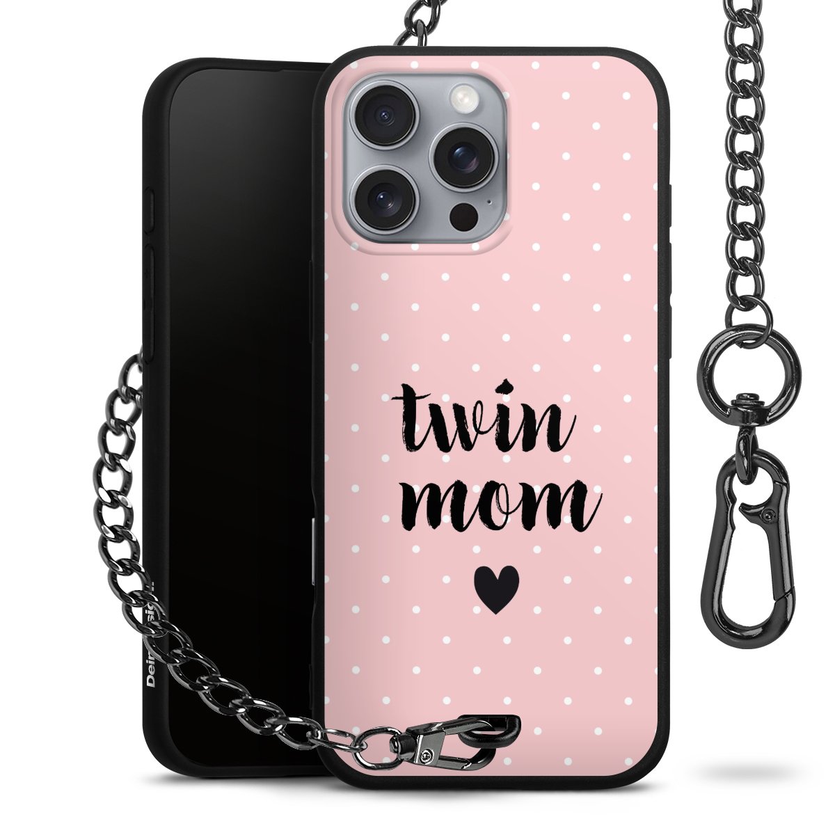 • Mattschwarze Handyhülle mit Metallkette