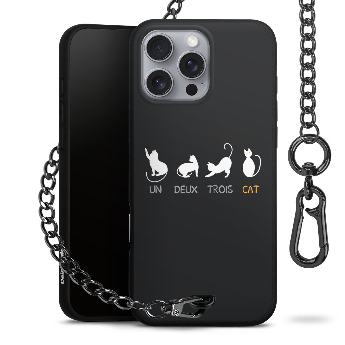 - Mattschwarze Handyhülle mit Metallkette
