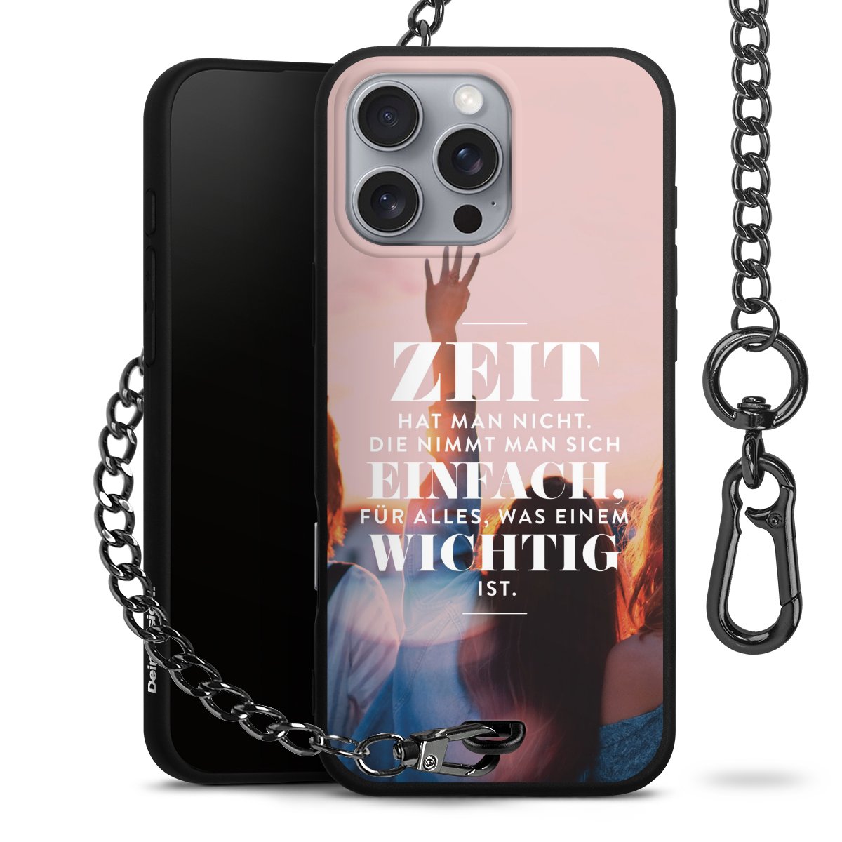 Die mattschwarze Silikon-Handyhülle besteht aus robustem TPU (thermoplastisches Polyurethan). Sie ist flexibel und schützt Dein Smartphone vor Stößen und Kratzern. Die Kette sowie der Karabinerhaken sind aus Metall in Gunmetal-Optik gefertigt. Für dieses Produkt kommen ausschließlich TÜV-geprüfte Materialien zum Einsatz.