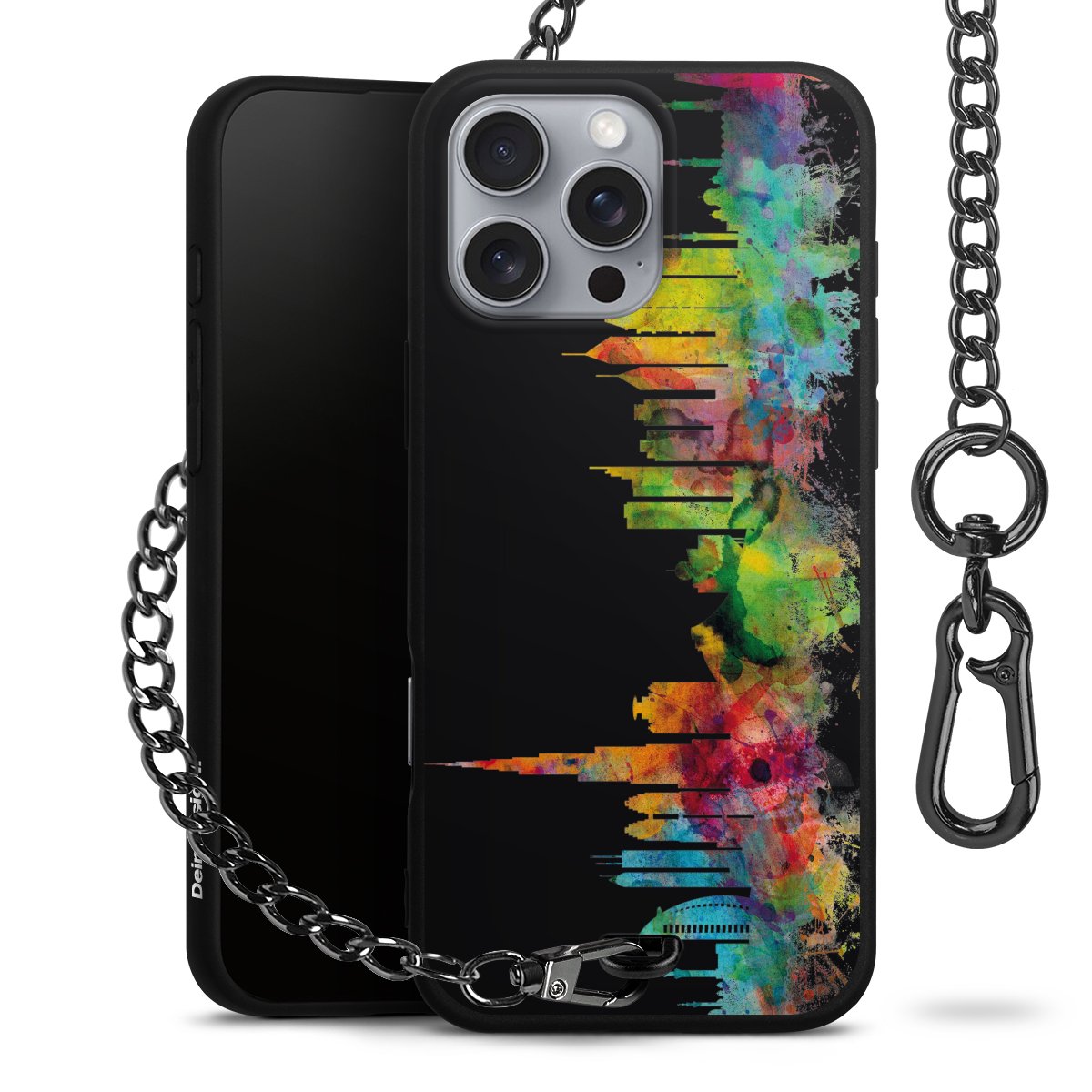 Die mattschwarze Silikon-Handyhülle besteht aus robustem TPU (thermoplastisches Polyurethan). Sie ist flexibel und schützt Dein Smartphone vor Stößen und Kratzern. Die Kette sowie der Karabinerhaken sind aus Metall in Gunmetal-Optik gefertigt. Für dieses Produkt kommen ausschließlich TÜV-geprüfte Materialien zum Einsatz.