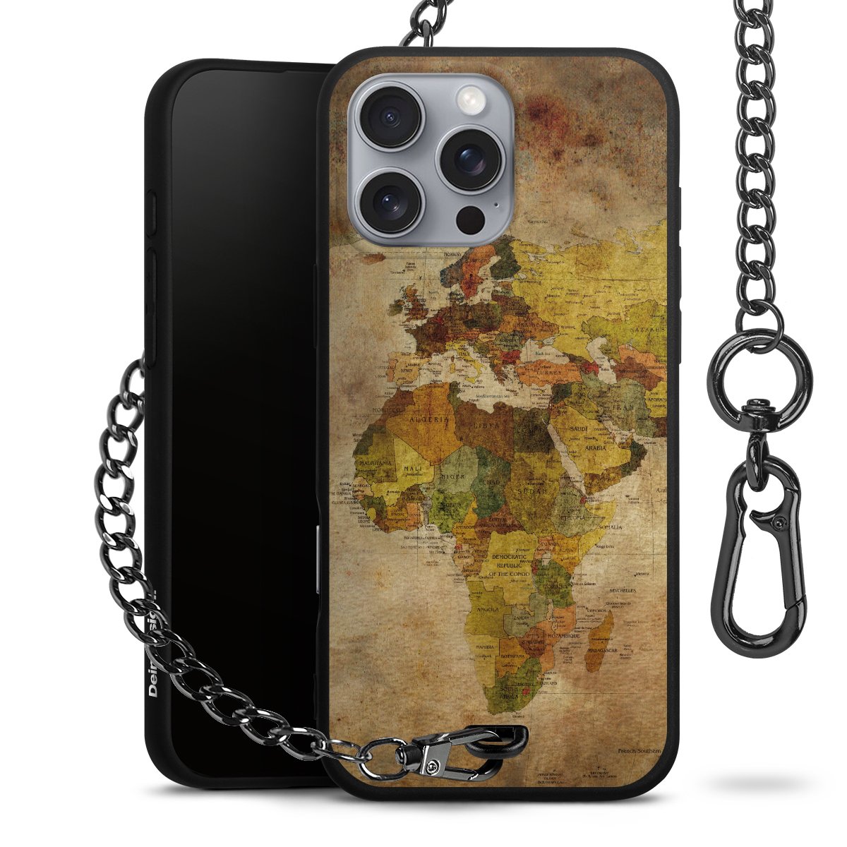 - Mattschwarze Handyhülle mit Metallkette