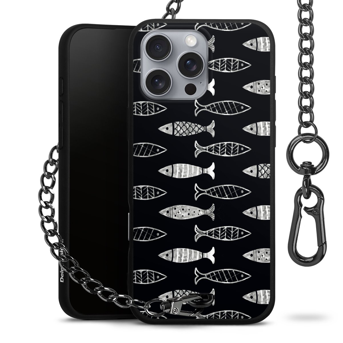 • Mattschwarze Handyhülle mit Metallkette