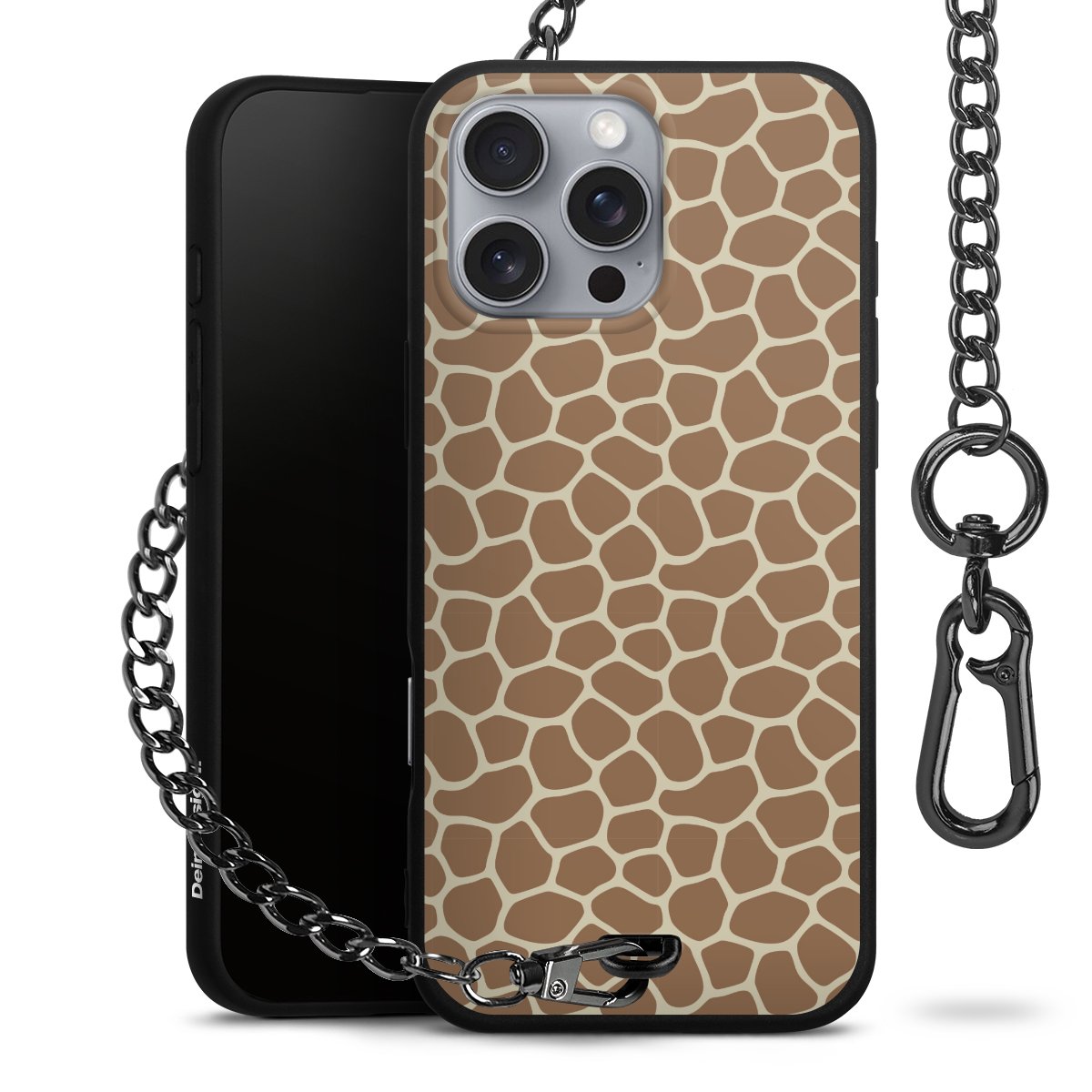 - Mattschwarze Handyhülle mit Metallkette