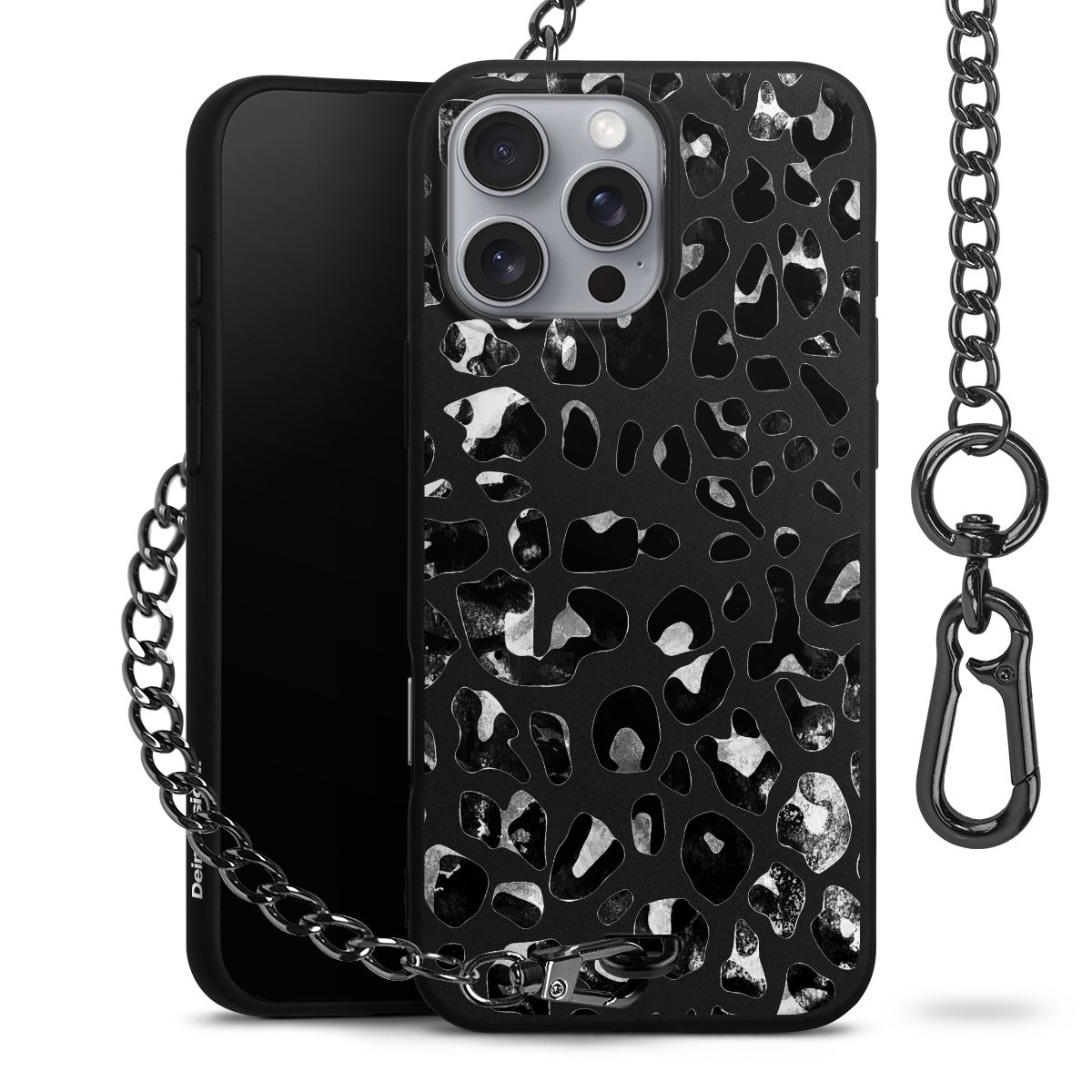 • Mattschwarze Handyhülle mit Metallkette
