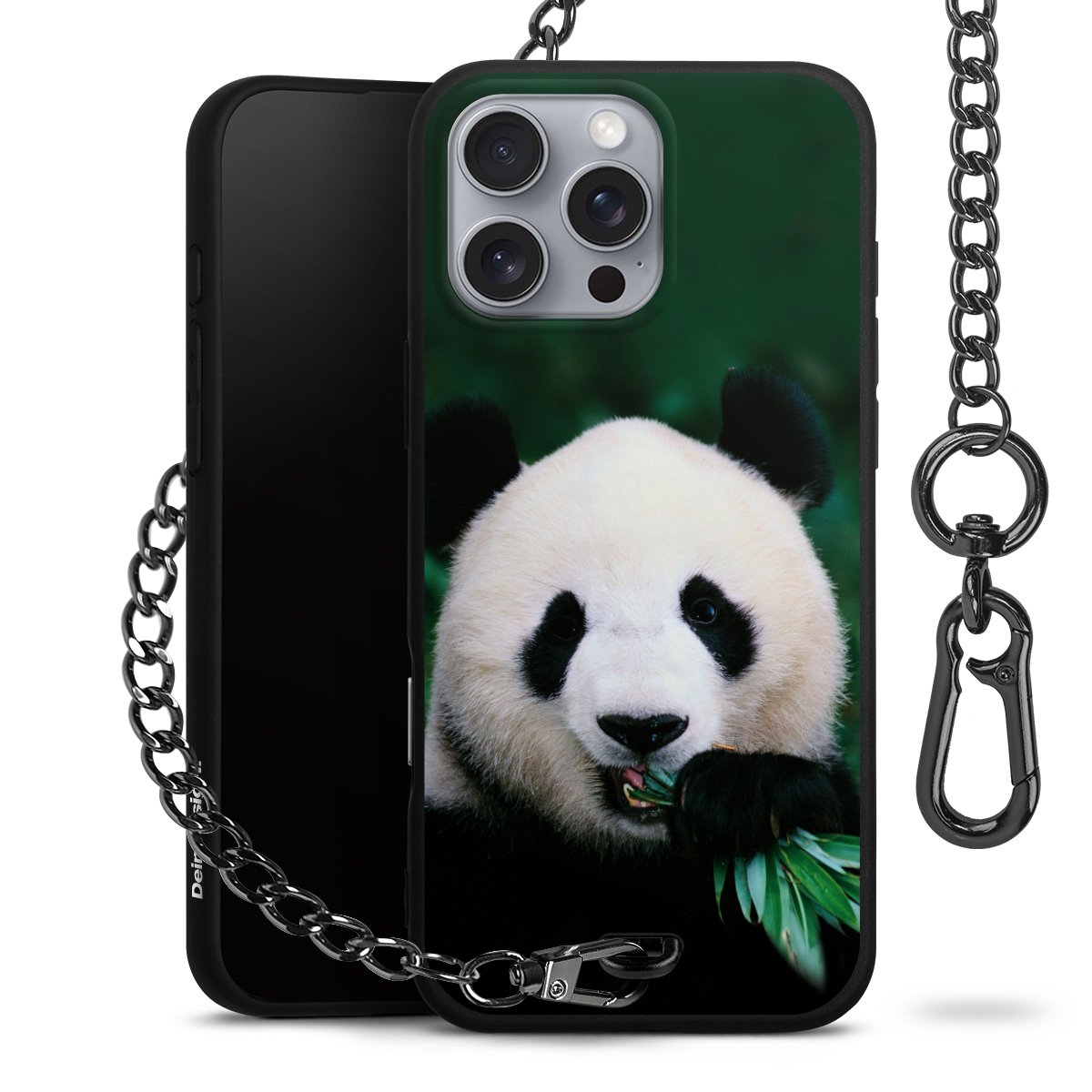 - Mattschwarze Handyhülle mit Metallkette