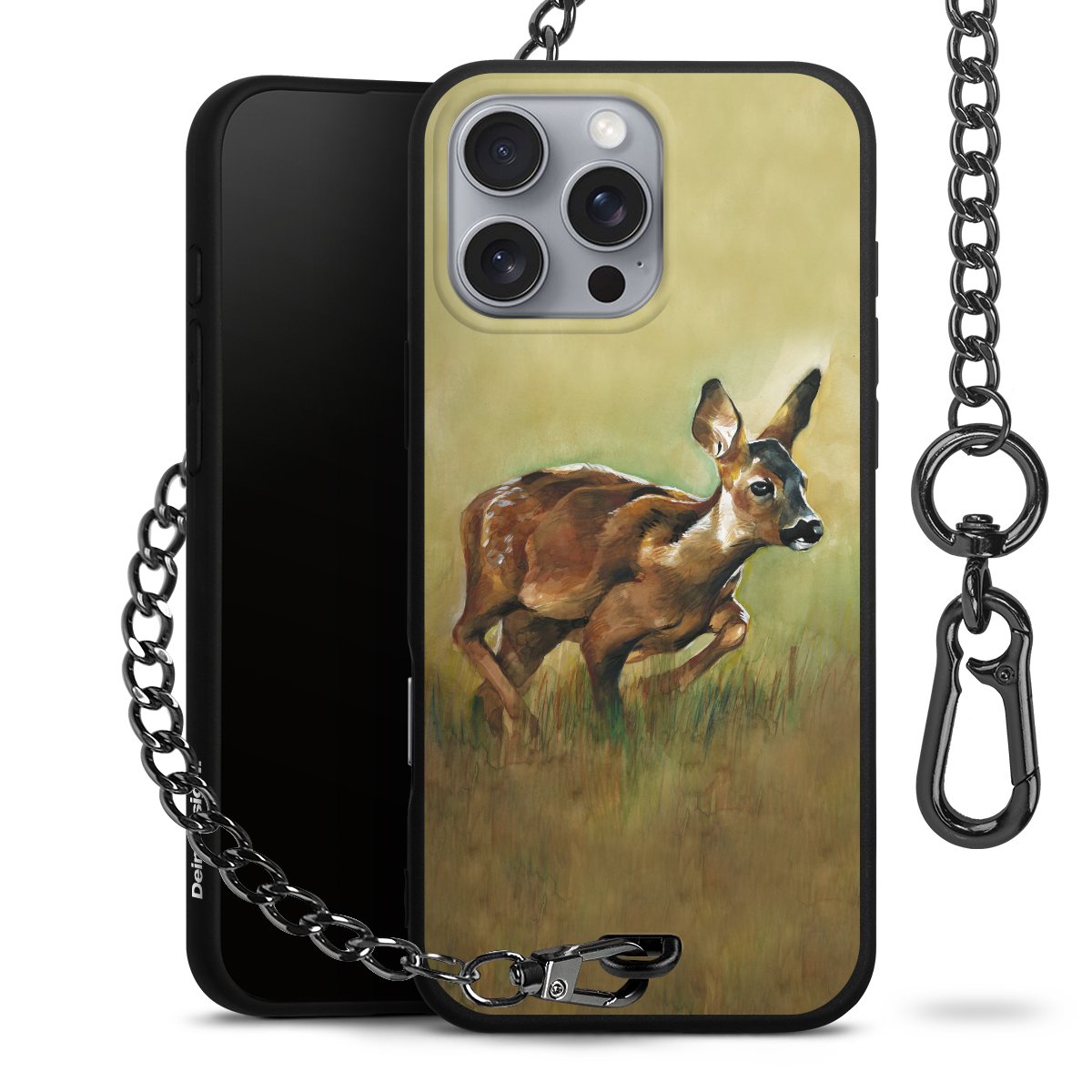 • Mattschwarze Handyhülle mit Metallkette