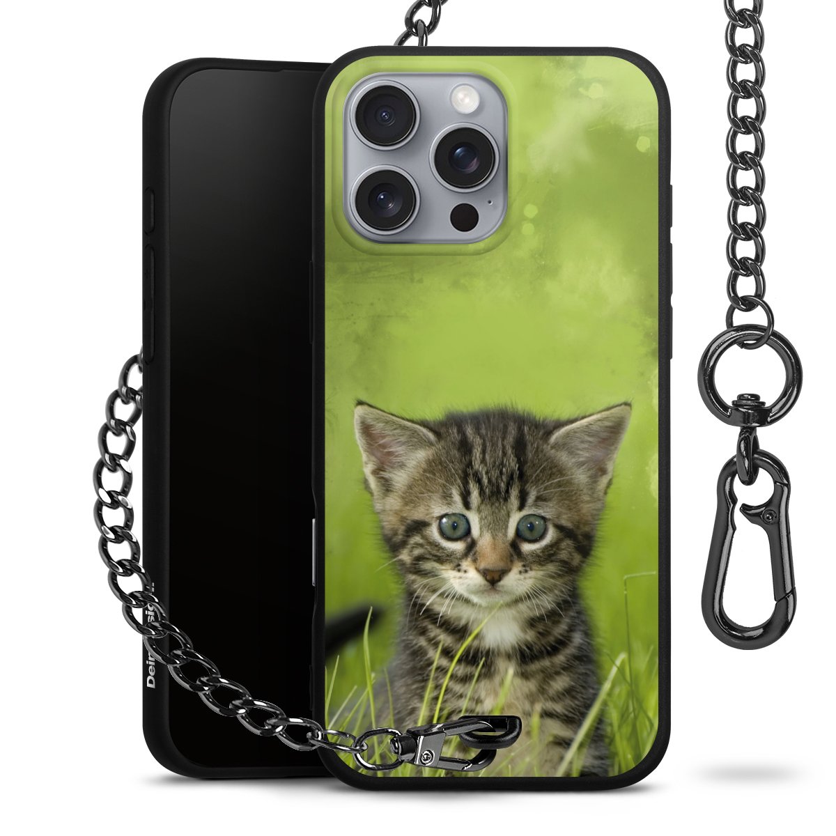 - Mattschwarze Handyhülle mit Metallkette