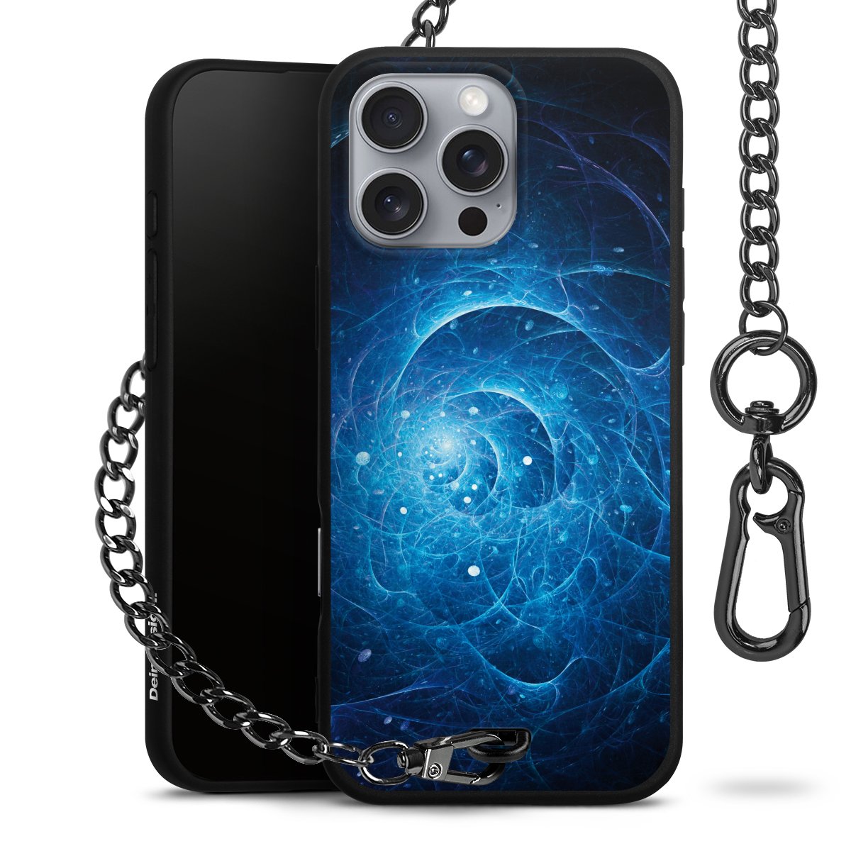 - Mattschwarze Handyhülle mit Metallkette