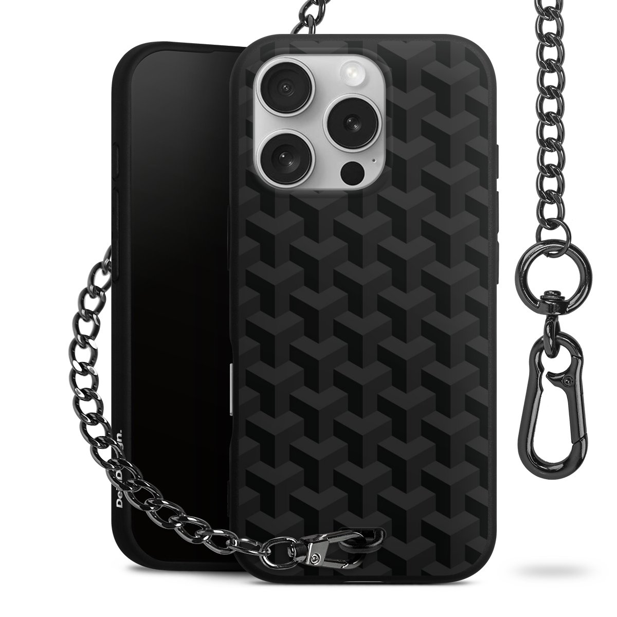 - Mattschwarze Handyhülle mit Metallkette
