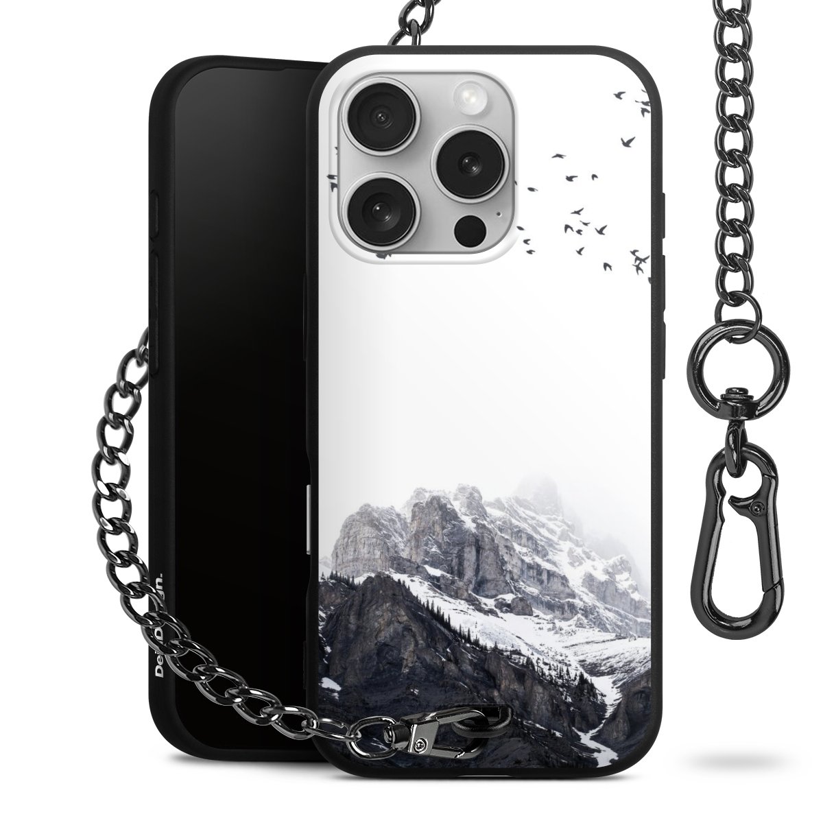 • Mattschwarze Handyhülle mit Metallkette