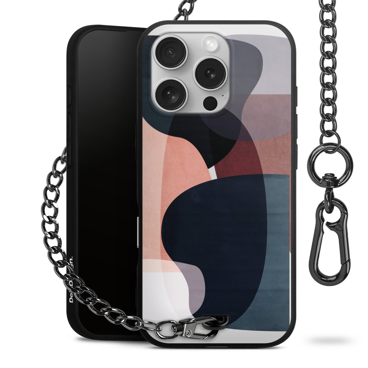 • Mattschwarze Handyhülle mit Metallkette