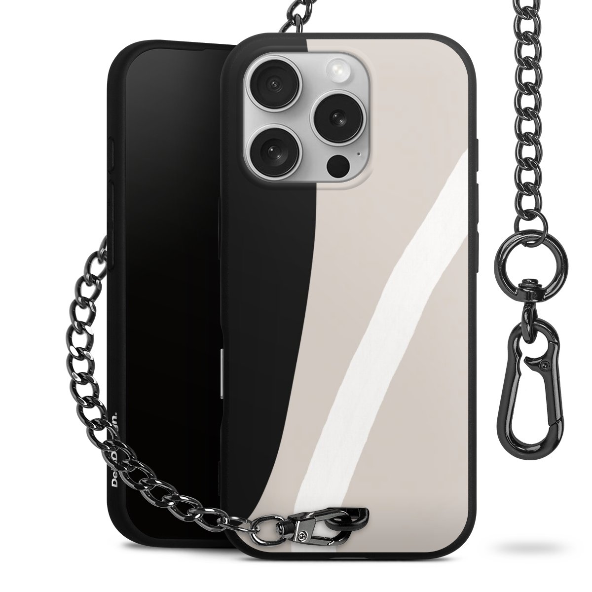 • Mattschwarze Handyhülle mit Metallkette