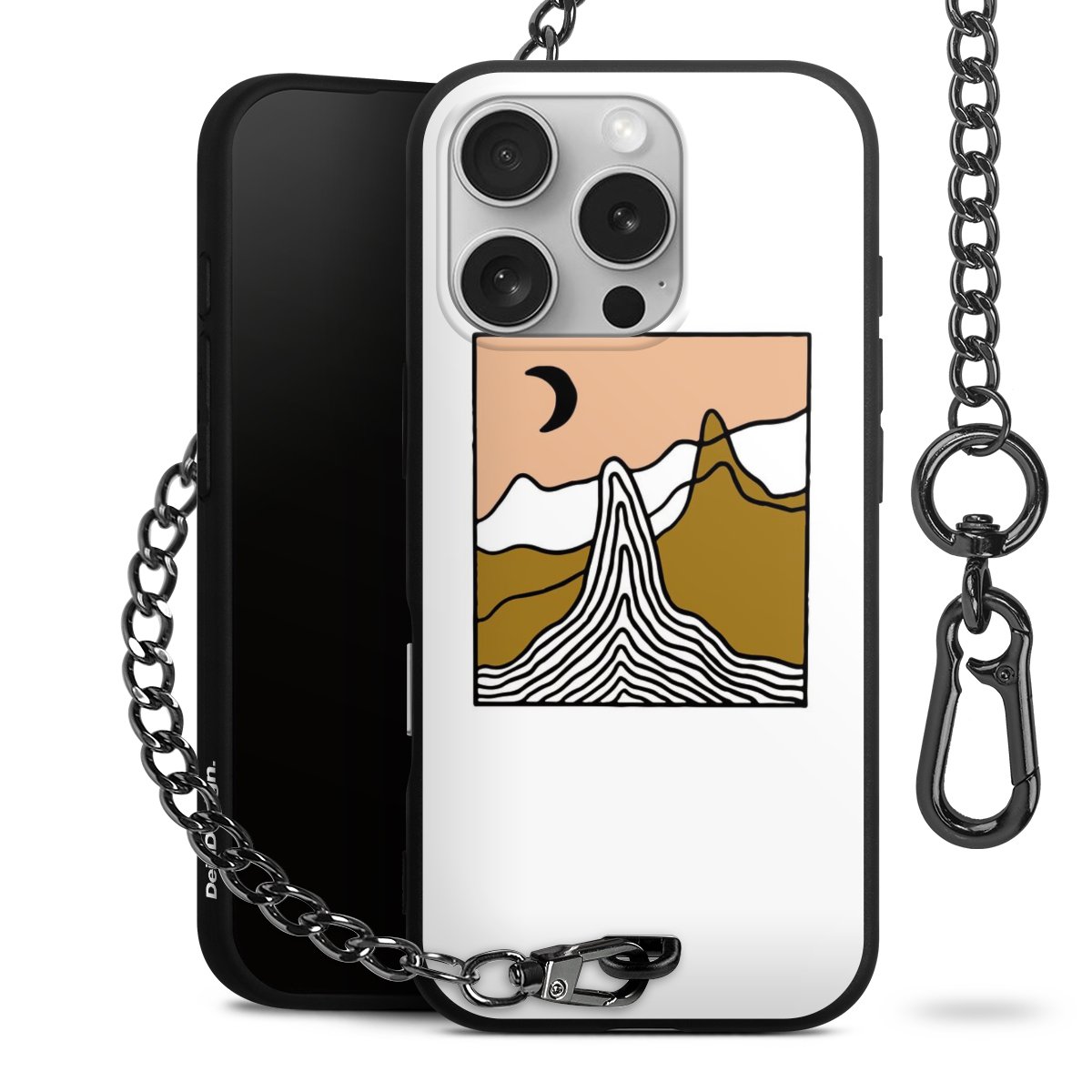 - Mattschwarze Handyhülle mit Metallkette
