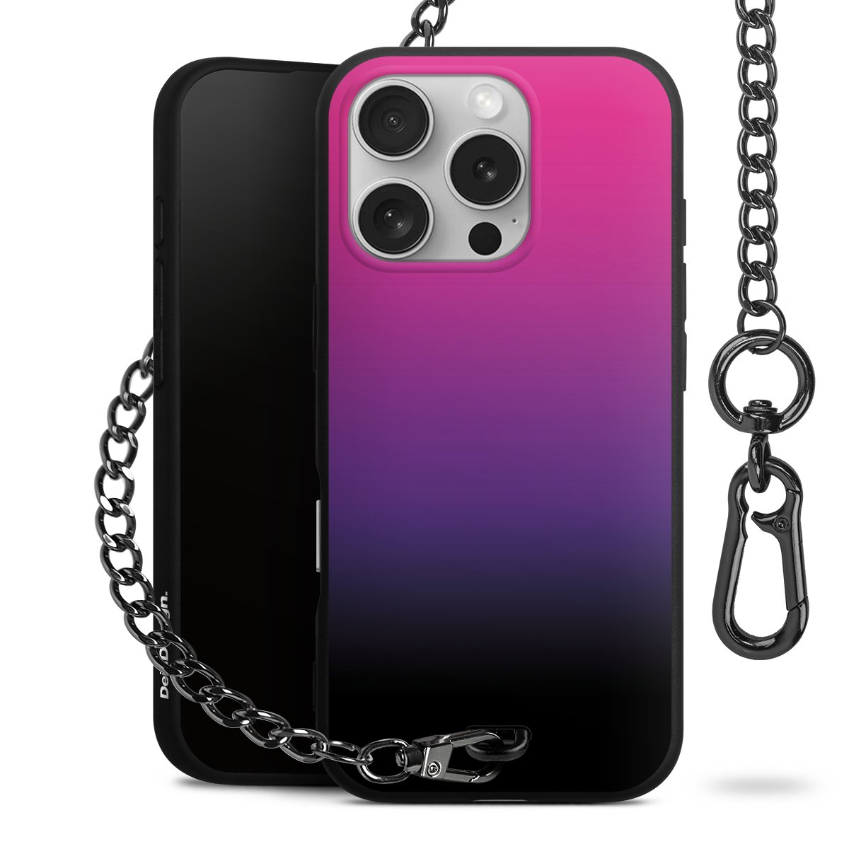 - Mattschwarze Handyhülle mit Metallkette