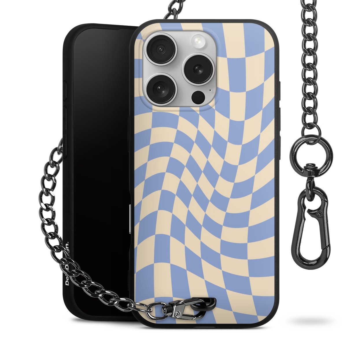 - Mattschwarze Handyhülle mit Metallkette