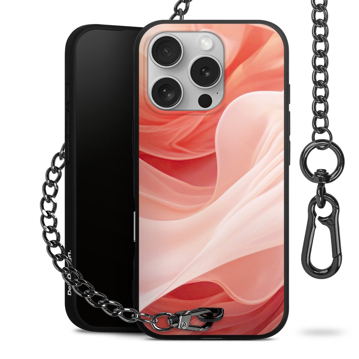 • Mattschwarze Handyhülle mit Metallkette