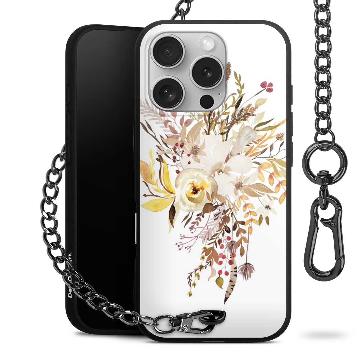 • Mattschwarze Handyhülle mit Metallkette