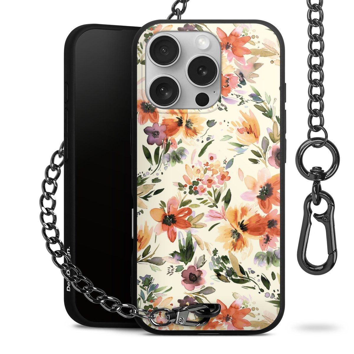 • Mattschwarze Handyhülle mit Metallkette