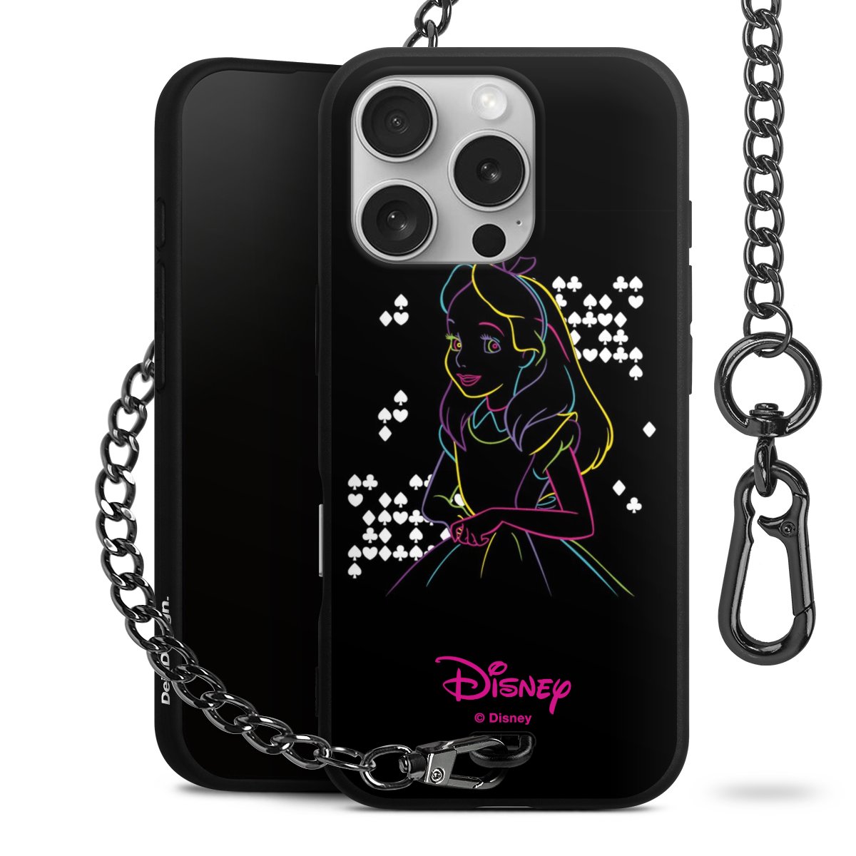 Die mattschwarze Silikon-Handyhülle besteht aus robustem TPU (thermoplastisches Polyurethan). Sie ist flexibel und schützt Dein Smartphone vor Stößen und Kratzern. Die Kette sowie der Karabinerhaken sind aus Metall in Gunmetal-Optik gefertigt. Für dieses Produkt kommen ausschließlich TÜV-geprüfte Materialien zum Einsatz.