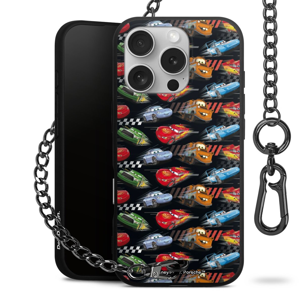 - Mattschwarze Handyhülle mit Metallkette