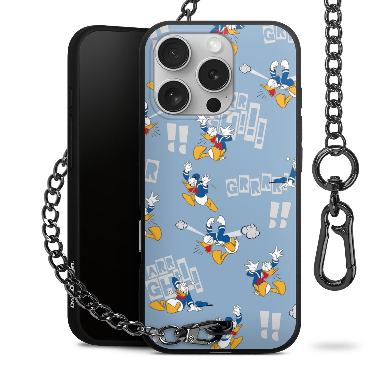 Die mattschwarze Silikon-Handyhülle besteht aus robustem TPU (thermoplastisches Polyurethan). Sie ist flexibel und schützt Dein Smartphone vor Stößen und Kratzern. Die Kette sowie der Karabinerhaken sind aus Metall in Gunmetal-Optik gefertigt. Für dieses Produkt kommen ausschließlich TÜV-geprüfte Materialien zum Einsatz.