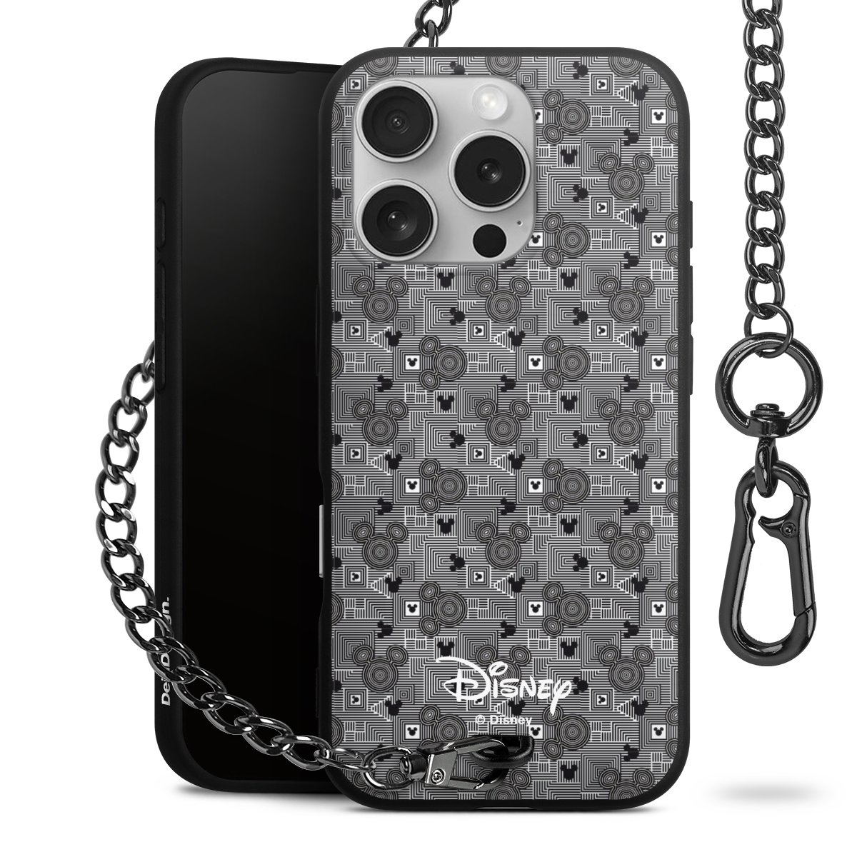 • Mattschwarze Handyhülle mit Metallkette