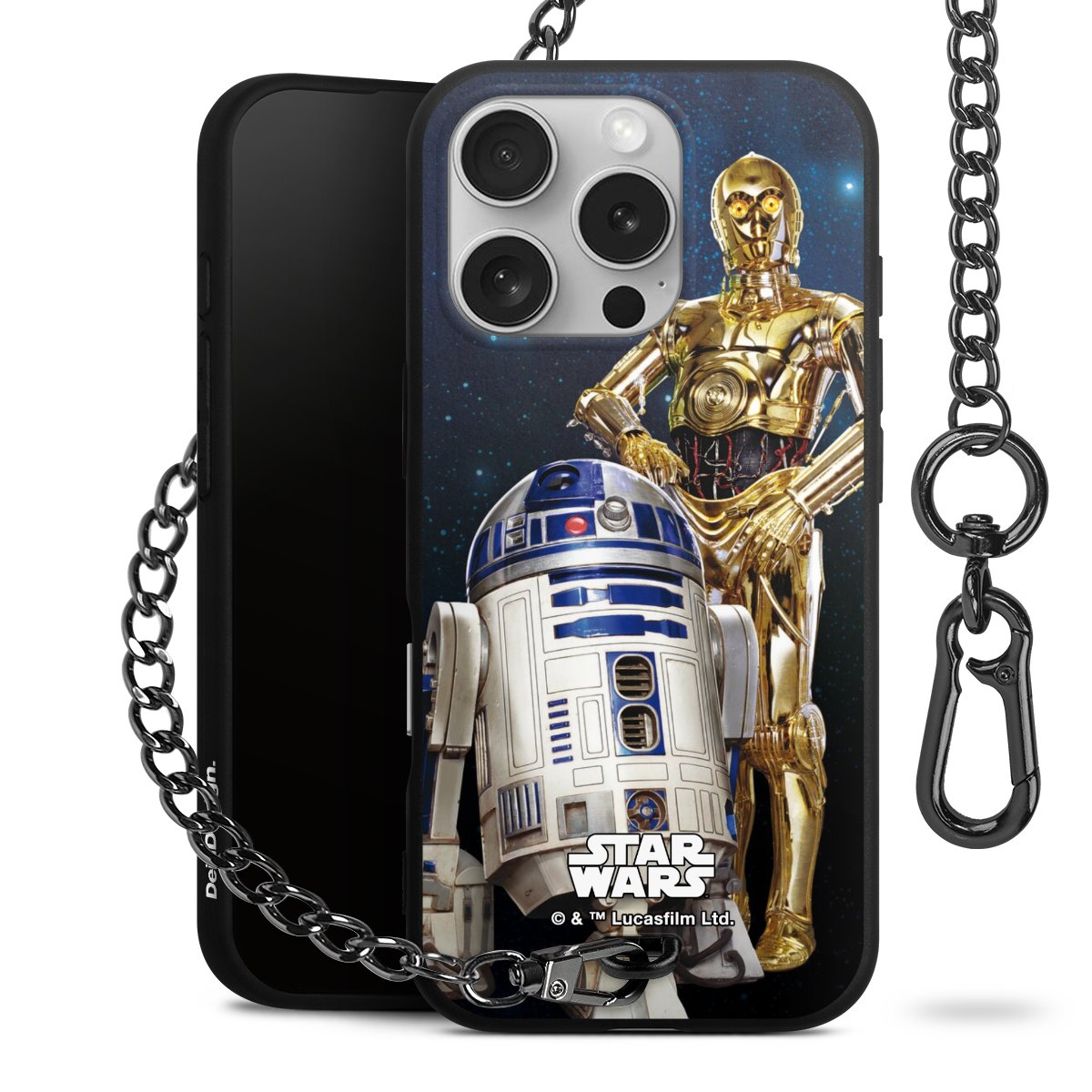 Darth Vader, C3PO, R2D2 und Meister Yoda findest Du in unserem Star Wars Shop auf DeinDesign. Natürlich gibt es auch Star Wars Handyhüllen mit den legendären Charakteren Luke Skywalker, Prinzessin Leia und Han Solo, den Helden der ersten Saga. Wer jedoch die Hauptfiguren der neuen Star Wars Filme ins Herz geschlossen hat, kann auch Finn und Rey mit ihren mächtigen Waffen auf der Rückseite seines Smartphones haben. Die vielseitigen Schutzhüllen in verschiedenen Ausführungen sind das perfekte Geschenk für alle Star Wars Fans, die ihrem Smartphone eine individuelle Note verleihen wollen.