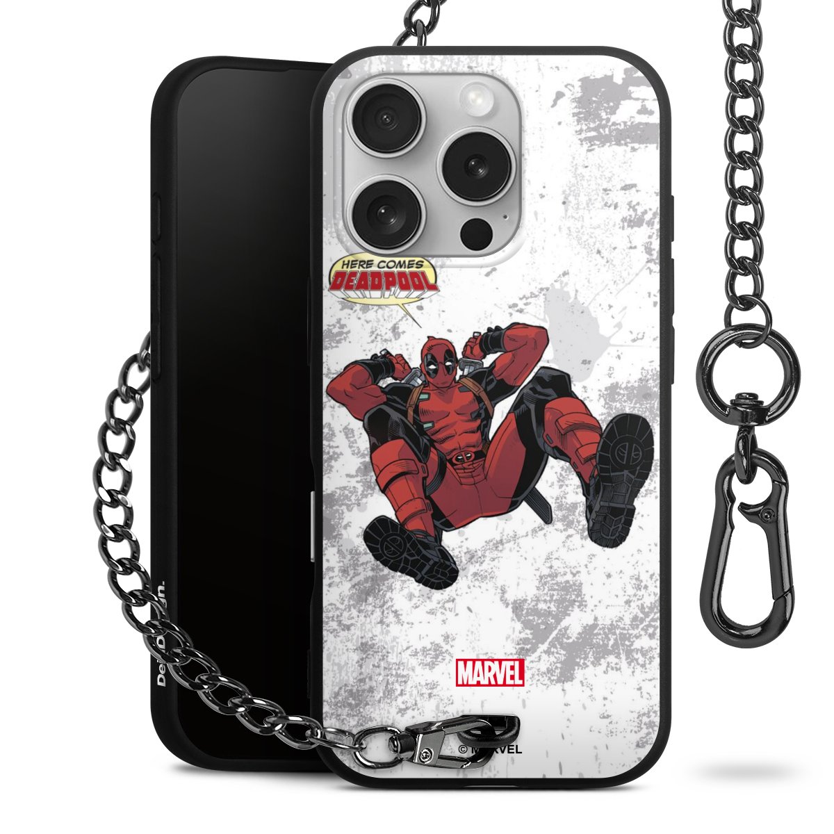 Die mattschwarze Silikon-Handyhülle besteht aus robustem TPU (thermoplastisches Polyurethan). Sie ist flexibel und schützt Dein Smartphone vor Stößen und Kratzern. Die Kette sowie der Karabinerhaken sind aus Metall in Gunmetal-Optik gefertigt. Für dieses Produkt kommen ausschließlich TÜV-geprüfte Materialien zum Einsatz.