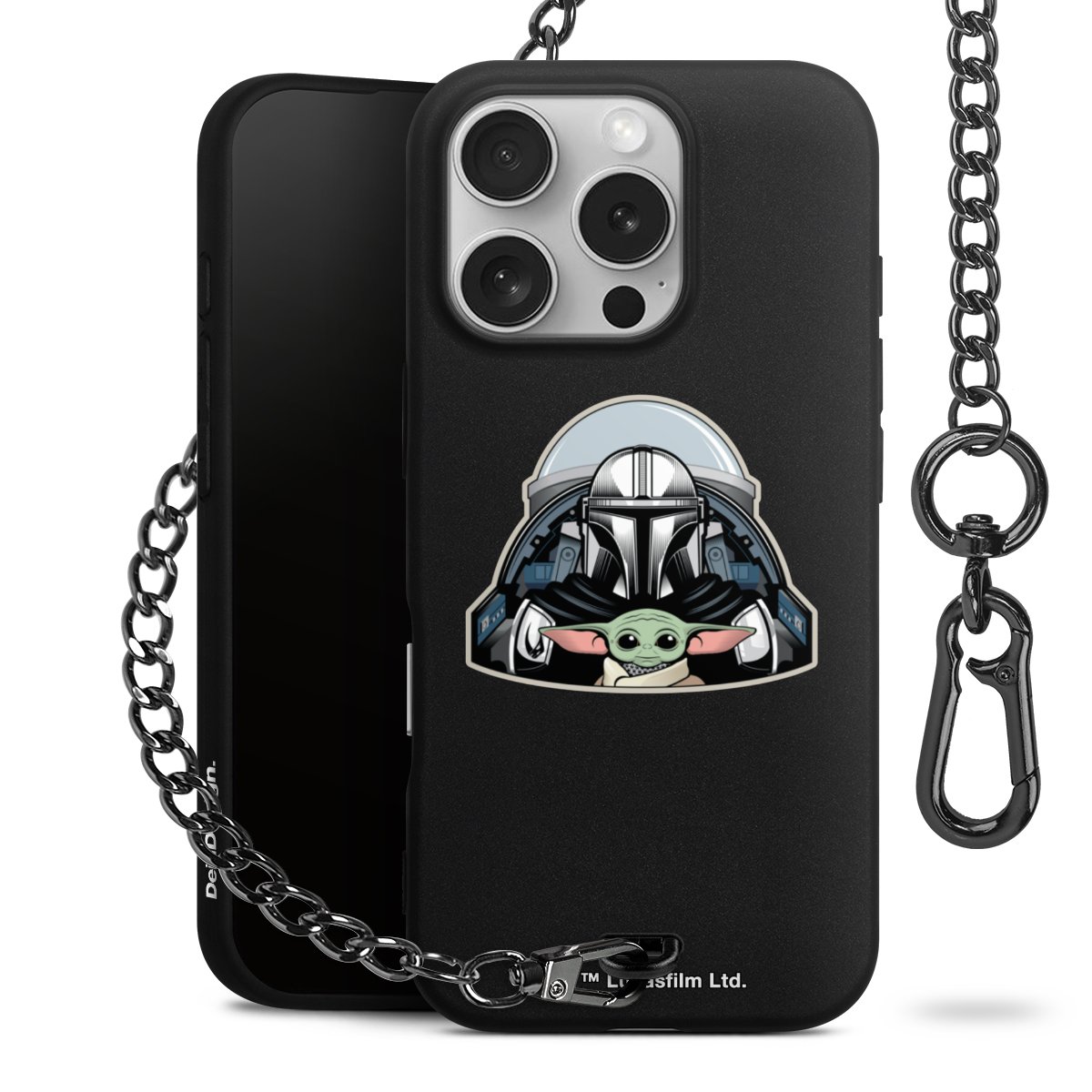 Die mattschwarze Silikon-Handyhülle besteht aus robustem TPU (thermoplastisches Polyurethan). Sie ist flexibel und schützt Dein Smartphone vor Stößen und Kratzern. Die Kette sowie der Karabinerhaken sind aus Metall in Gunmetal-Optik gefertigt. Für dieses Produkt kommen ausschließlich TÜV-geprüfte Materialien zum Einsatz.