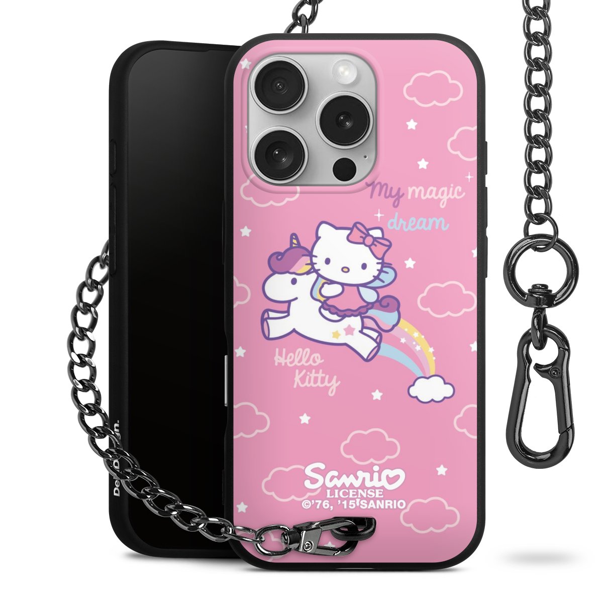 Die mattschwarze Silikon-Handyhülle besteht aus robustem TPU (thermoplastisches Polyurethan). Sie ist flexibel und schützt Dein Smartphone vor Stößen und Kratzern. Die Kette sowie der Karabinerhaken sind aus Metall in Gunmetal-Optik gefertigt. Für dieses Produkt kommen ausschließlich TÜV-geprüfte Materialien zum Einsatz.