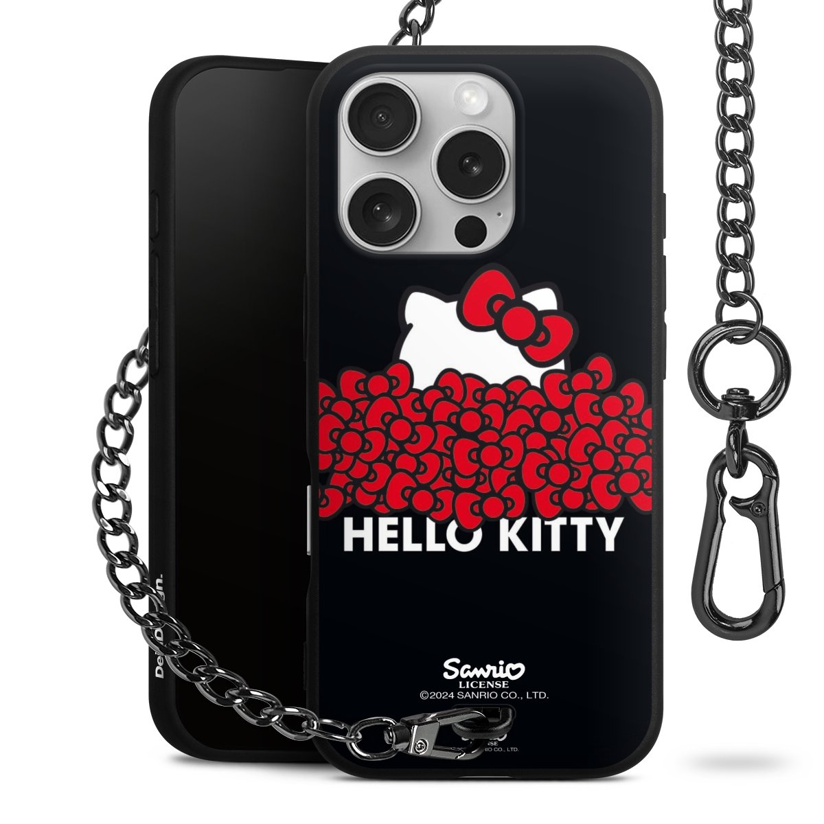 Die mattschwarze Silikon-Handyhülle besteht aus robustem TPU (thermoplastisches Polyurethan). Sie ist flexibel und schützt Dein Smartphone vor Stößen und Kratzern. Die Kette sowie der Karabinerhaken sind aus Metall in Gunmetal-Optik gefertigt. Für dieses Produkt kommen ausschließlich TÜV-geprüfte Materialien zum Einsatz.
