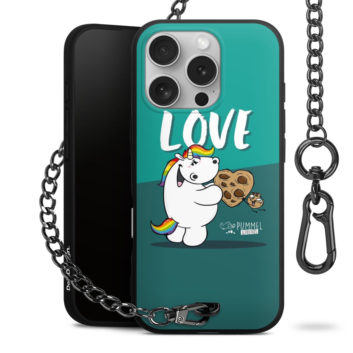 Die mattschwarze Silikon-Handyhülle besteht aus robustem TPU (thermoplastisches Polyurethan). Sie ist flexibel und schützt Dein Smartphone vor Stößen und Kratzern. Die Kette sowie der Karabinerhaken sind aus Metall in Gunmetal-Optik gefertigt. Für dieses Produkt kommen ausschließlich TÜV-geprüfte Materialien zum Einsatz.