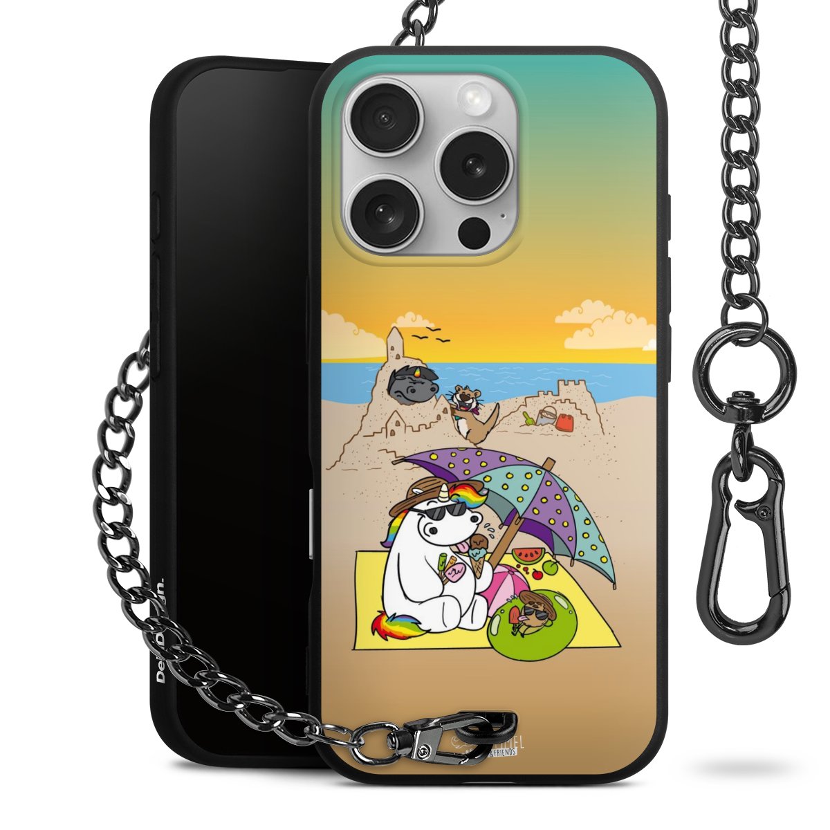 Die mattschwarze Silikon-Handyhülle besteht aus robustem TPU (thermoplastisches Polyurethan). Sie ist flexibel und schützt Dein Smartphone vor Stößen und Kratzern. Die Kette sowie der Karabinerhaken sind aus Metall in Gunmetal-Optik gefertigt. Für dieses Produkt kommen ausschließlich TÜV-geprüfte Materialien zum Einsatz.